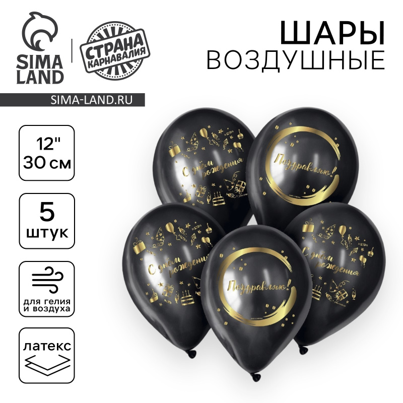 Воздушный шар 30см Сднем рождения набор 5шт 7733846