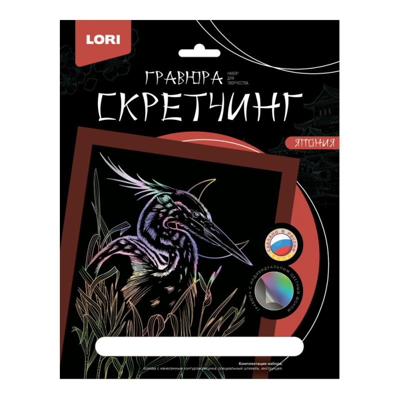 Гравюра скретчинг 18*24см Японская цапля Гр-744